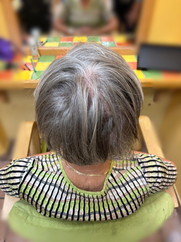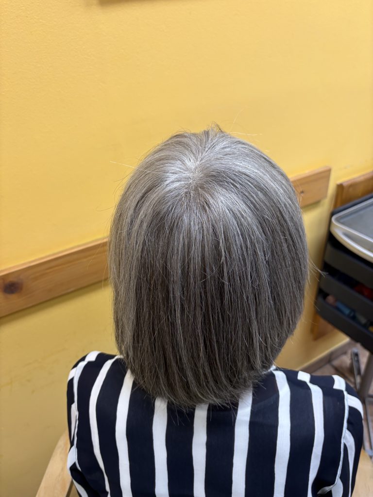 Po želji dodamo tudi nekaj sivih las ali pramen.